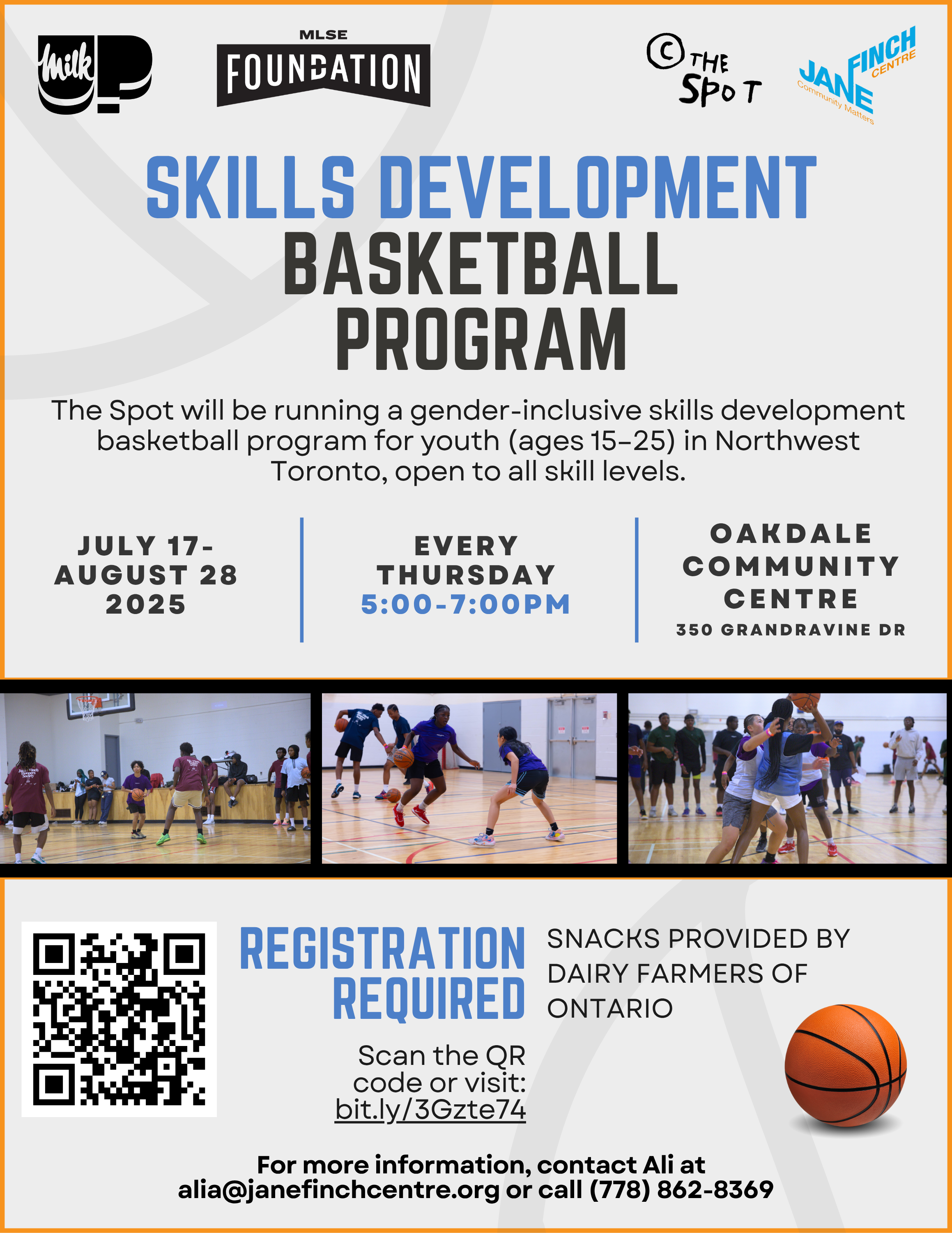 The Spot is running a gender-inclusive skills development basketball program for youth ages 15-25 in Northwest Toronto, open to all skill levels.